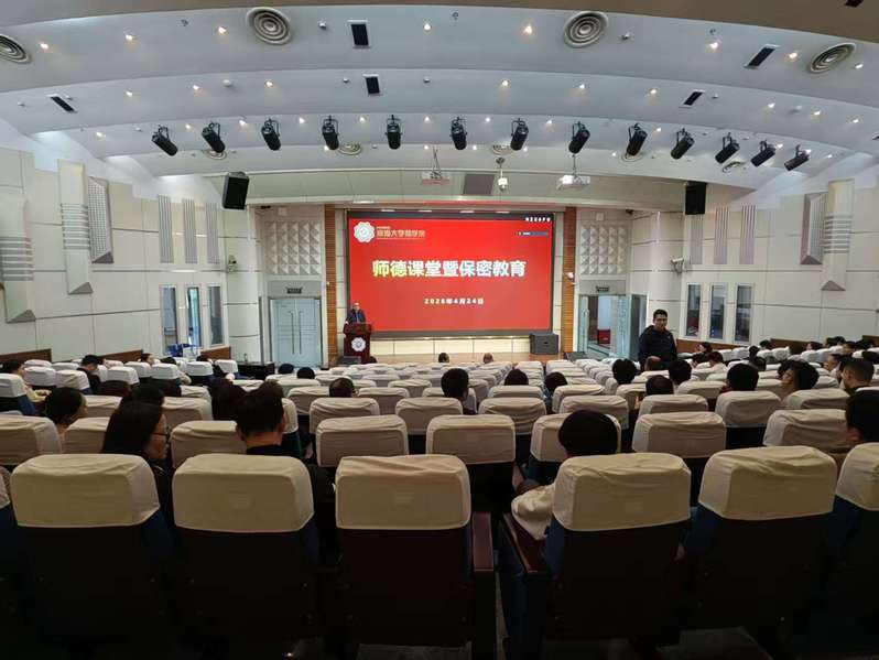 为深入贯彻落实立德树人根本任务,进一步加强师德师风建设,提升全员保密安全意识,4月24日,我院在江宁校区江宁会议中心召开“师德教育第一课”暨保密教育大会。会议由学院党委书记陈杰主持,全体教职工参加。会议特别邀请西安电子科技大学研究生工作部霍学浩副部长为全体教职工作《构建导学思政育人体系,落实导师立德树人职责》的专题报告。报告从工作背景与思路入手,系统阐述了新时代研究生思政工作的创新方向。霍部长详细介绍了如何通过打造研究生思政工作新载体、开辟导学团队建设新路径、建立导学团队思政工作新机制,持续提升育人实效。西安电子科技大学研究生“三好三有”导学思政育人体系的创新与实践为我院教师深入理解并履行导师育人职责提供了重要借鉴。张长征院长以《践行教育家精神,做新时代大先生》为题主讲师德教育专题。他分析了当前师德建设面临的形势与环境,强调“师德师风”建设的重要性和紧迫性,带领全体教师重温《新时代高校教师职业行为十项准则》及“红八条”等教师职业道德行为规范,明确“守底线”是基本要求。通过剖析师德违规典型案例,以案示警、以案明纪。他号召全体教师将教育家精神内化于心、外化于行,坚守三尺讲台,潜心教书育人,
