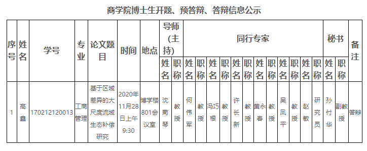 商学院博士生开题预答辩答辩信息公示