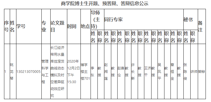 商学院博士生开题、预答辩、答辩信息公示