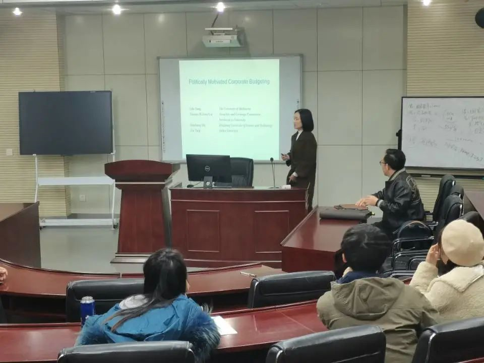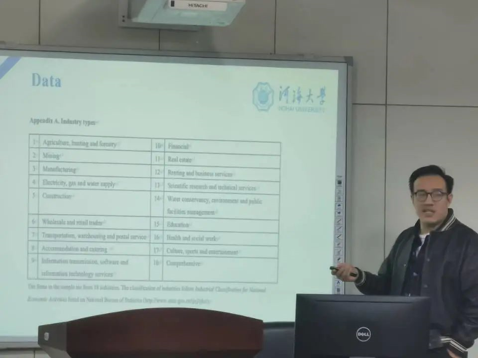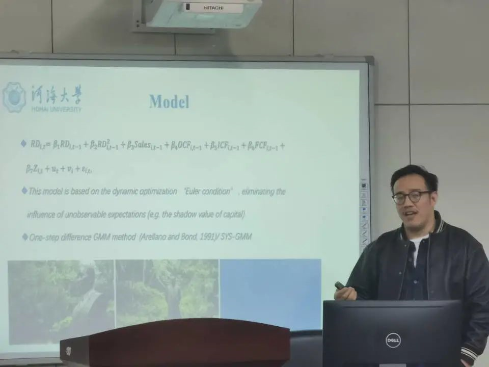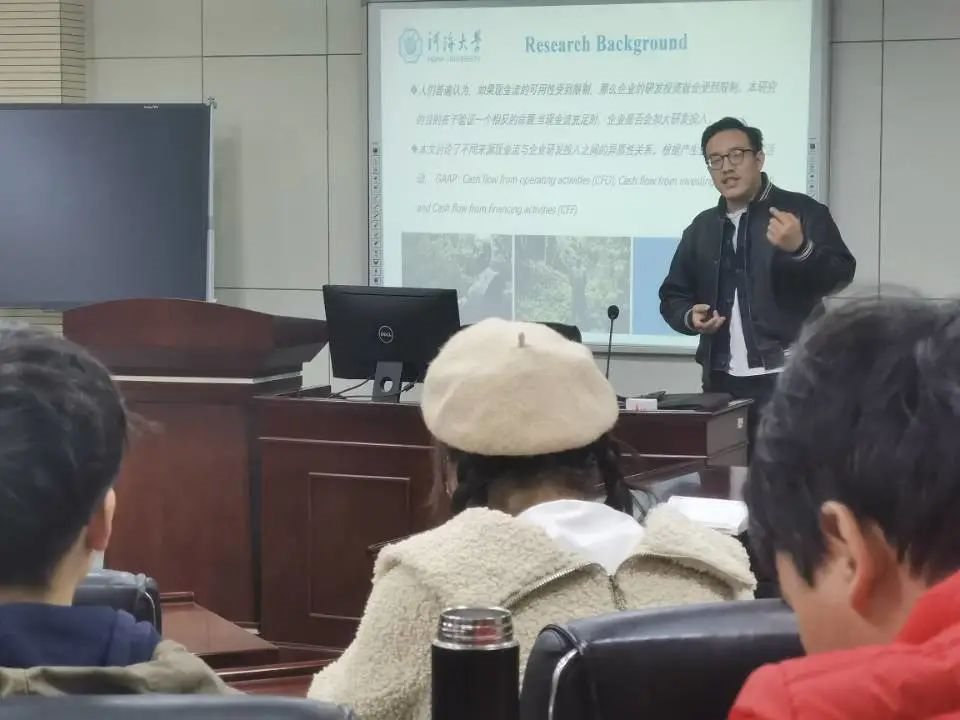 2020年12月10日,商苑讲坛第十一期在博学楼辅楼A412顺利开展。河海大学商学院有幸邀请到了卢浩老师和杨鑫老师,两位老师共同为学生们带来一场主题为“现金流可用性影响投资与有政治动机的公司预算”的讲座。讲座分为两部分,第一部分,现金流可用性影响投资,由卢浩老师讲述;第二部分,有政治动机的公司预算,由杨鑫老师讲述。