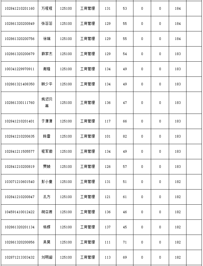 一、商学院2021年MBA调剂复试资格公示名单