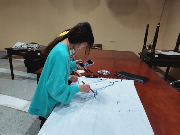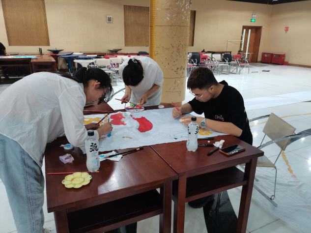 活动中,参赛选手,以小组为单位选择画布、画笔、调色盘。接着,各小组成员分工合作在长、宽各为1米的画布上围绕“学党史,守初心”的主题自由绘画。活动期间,同学们用画笔描绘建党百年进程中的重要事件,国旗、天安门、长城、党徽、南湖游船、高铁等作为素材被参赛者精心细致地描绘出来。除了绘画,有不少书法也很引人注目,例如“爱我中华”、“不忘初心”等等,同学们用画笔充分表达了对祖国的热爱之情和美好祝愿。