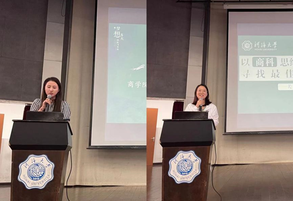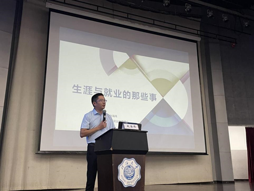 首先,赵海伟老师从自己的生涯规划经历出发,引导同学们思考学习目的及未来目标。在专业学习与职业发展的联系上,指出同学们需要实现被动选择—主动选择—认同选择三个阶段的跃升,商学院学生应保持专业自信,将专业背景作为职业发展的支撑。在生涯规划方面,同学们应综合价值观、家庭背景、个人能力多维度展开生涯规划,调整人生定位。在就业规划方面,同学们应全面了解自我、掌握多方信息、发挥自我潜能展开未来决策。