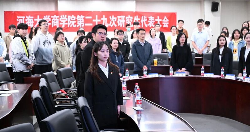 10月20日,河海大学商学院第二十九次研究生代表大会在江宁校区博学楼A100顺利召开。商学院团委负责人陈鹏老师,研究生辅导员于陶老师、张婧老师,校研究生会代表沈哲如同学以及各年级推选产生的研究生代表(实到92人)参加了本次会议。