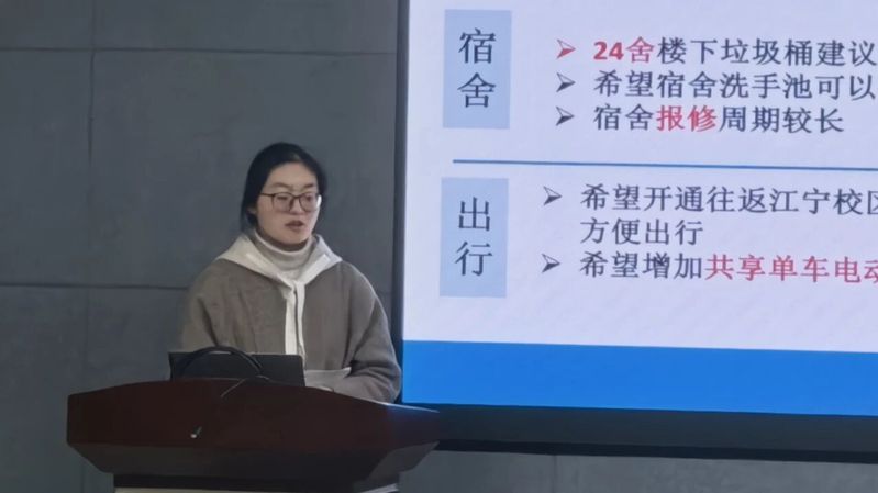 会议伊始,本科各年级生活委员率先进行发言。他们紧扣同学们普遍关切的校园生活重点领域,分别从校园饮食、交通出行、快递购物、宿舍生活、学习环境、安全隐患等多个维度切入,针对性地提出了一系列具体可行的改进建议。