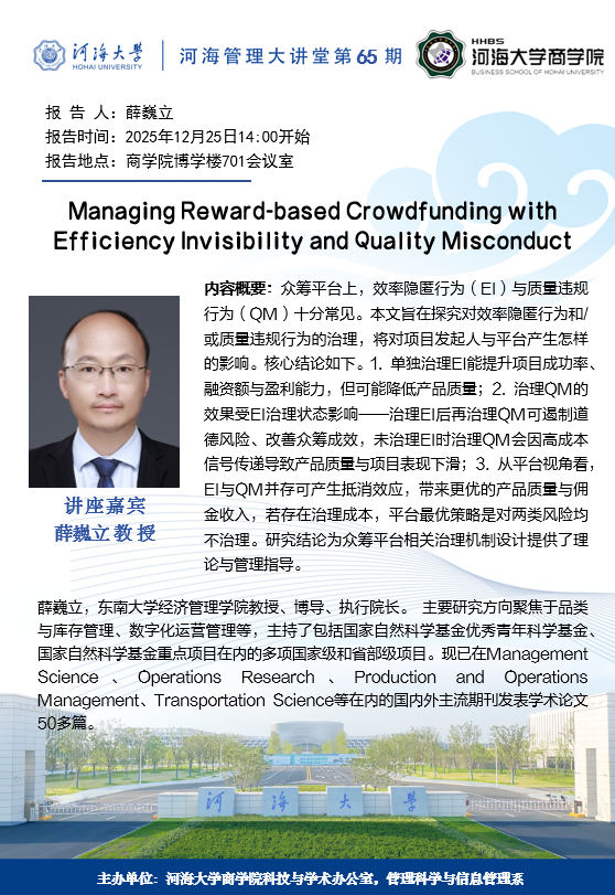 Managing Reward-based Crowdfunding withEfficiency Invisibility and Quality Misconduct