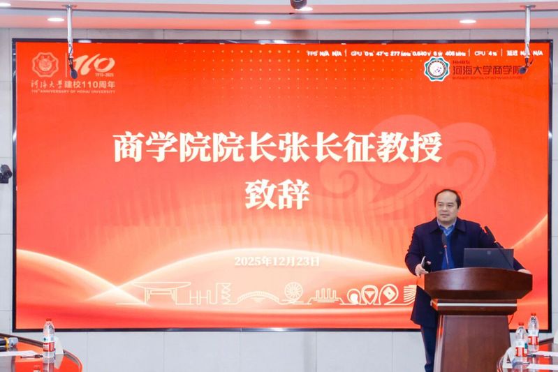 2025年12月23日下午,“智慧投资,风控未来”河海大学商学院第一届智慧投资与风险管理大赛颁奖典礼在博学楼A100报告厅隆重举行。本次大赛由河海大学商学院与东方财富信息股份有限公司联合主办,旨在探索产教融合新路径,提升学生的金融实践与创新能力。东方财富公司市场部总监安佳媛女士,河海大学创新创业学院院长、校团委书记朱乔老师,商学院院长张长征教授,教务处周林老师等校企领导、师生代表齐聚一堂,共同见证这一融合智慧与创新的荣誉时刻,本次颁奖典礼由财务金融系冷建飞老师主持。