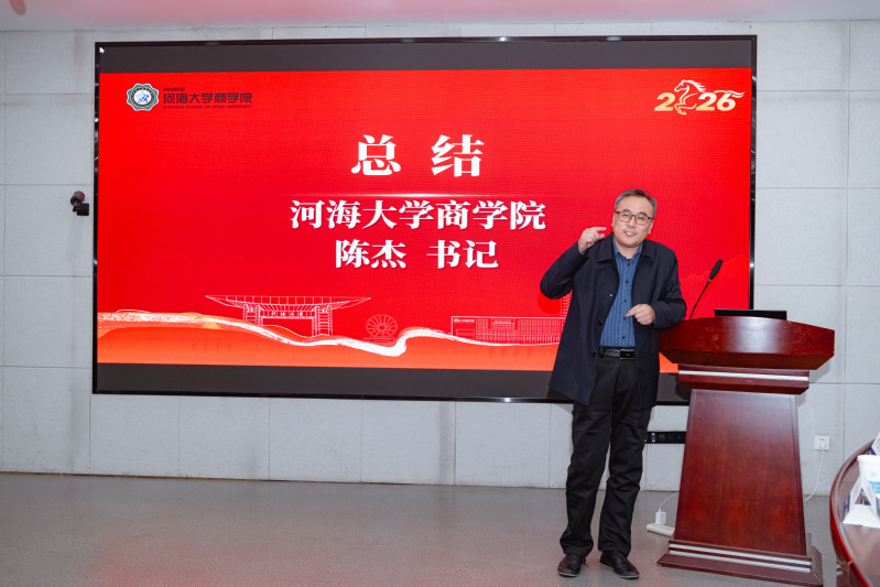 2026年1月8日,河海大学商学院联合中国水利学会会计专业委员会,在江宁校区举行“水利财会铸初心 课程思政育英才——职通思政”交流活动。中国水利学会会计专业委员会主任委员牛志奇研究员,黄河水利委员会山东黄河河务局财务处处长、高级会计师邱金荣,全国会计知识大赛、中央国家机关会计知识大赛、水利部会计知识竞赛的参赛领队及选手段玥、张明霞、邱睿、陈红、胡琳和王洋雨,围绕思政教育与会计学专业教学深度融合、兼具思政底色与专业素养的高素质会计人才培养,与会计学系师生、商学院辅导员开展现场交流。河海大学教务处副处长陈磊、马克思主义学院院长戴锐、商学院党委书记陈杰、副书记杨天出席。活动由商学院副院长李弘扬主持。