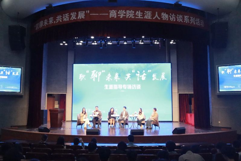 为引导我院本科生深刻领会职业生涯规划的重要意义,近距离触摸真实职业生态,树立对专业领域、行业态势、岗位需求及市场发展前景的理性认知,主动擘画未来职业发展蓝图,明晰自身奋斗方向,2026年4月15日,商学院“职聊未来,共话发展”生涯人物访谈活动于博学楼报告厅圆满举办。