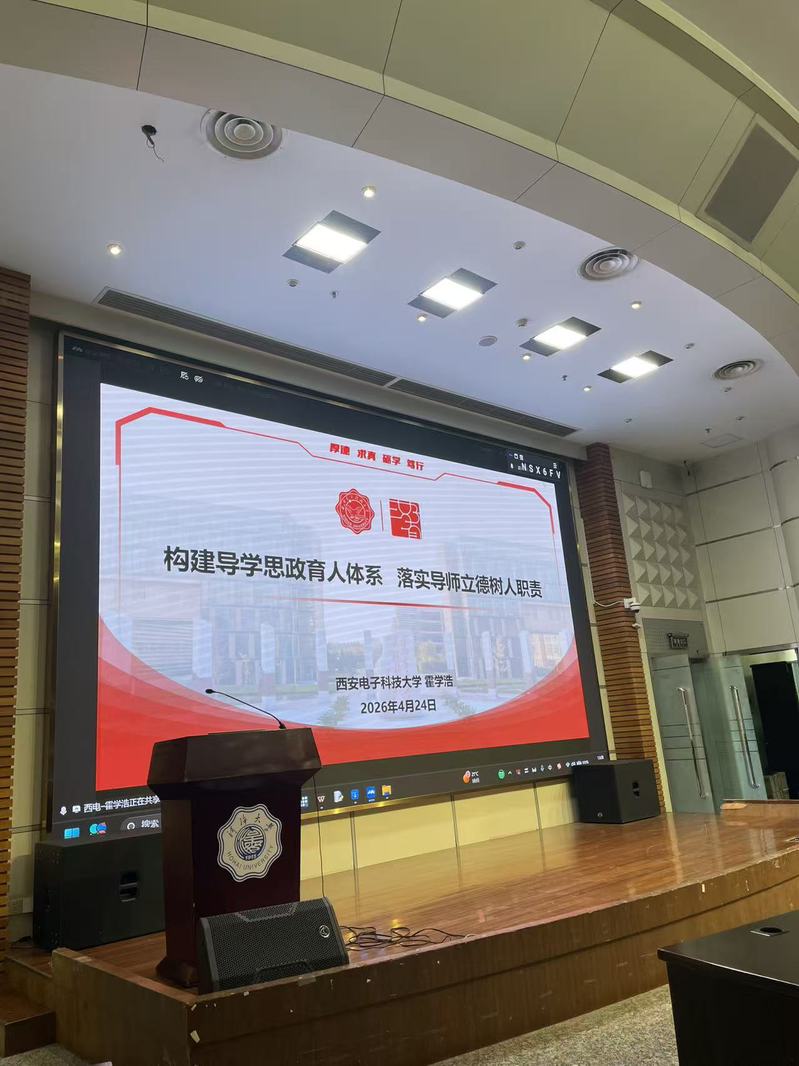 会议特别邀请西安电子科技大学研究生工作部霍学浩副部长为全体教职工作《构建导学思政育人体系,落实导师立德树人职责》的专题报告。报告从工作背景与思路入手,系统阐述了新时代研究生思政工作的创新方向。霍部长详细介绍了如何通过打造研究生思政工作新载体、开辟导学团队建设新路径、建立导学团队思政工作新机制,持续提升育人实效。西安电子科技大学研究生“三好三有”导学思政育人体系的创新与实践为我院教师深入理解并履行导师育人职责提供了重要借鉴。