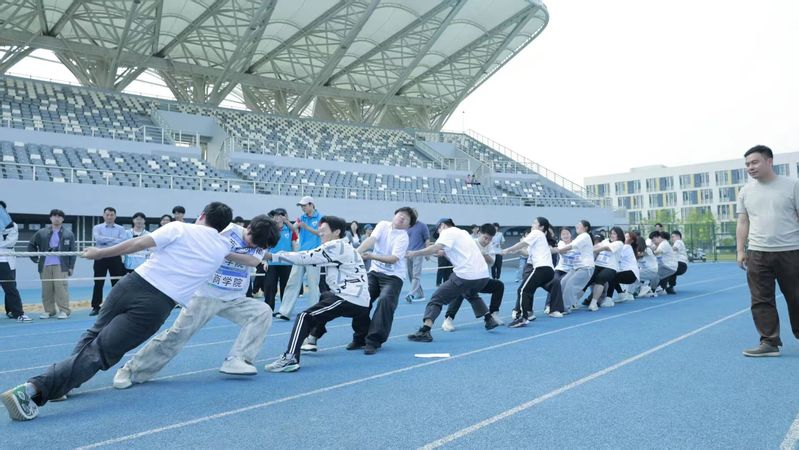 高潮迭起的拔河比赛中,商学院队员凝心聚力、重心下沉、齐心发力,一声声号子铿锵有力,一次次拼搏韧劲十足。面对强劲对手,大家不言放弃、拼至最后,以实际行动诠释“凝心聚力、奋勇争先”的体育精神,赢得阵阵喝彩。